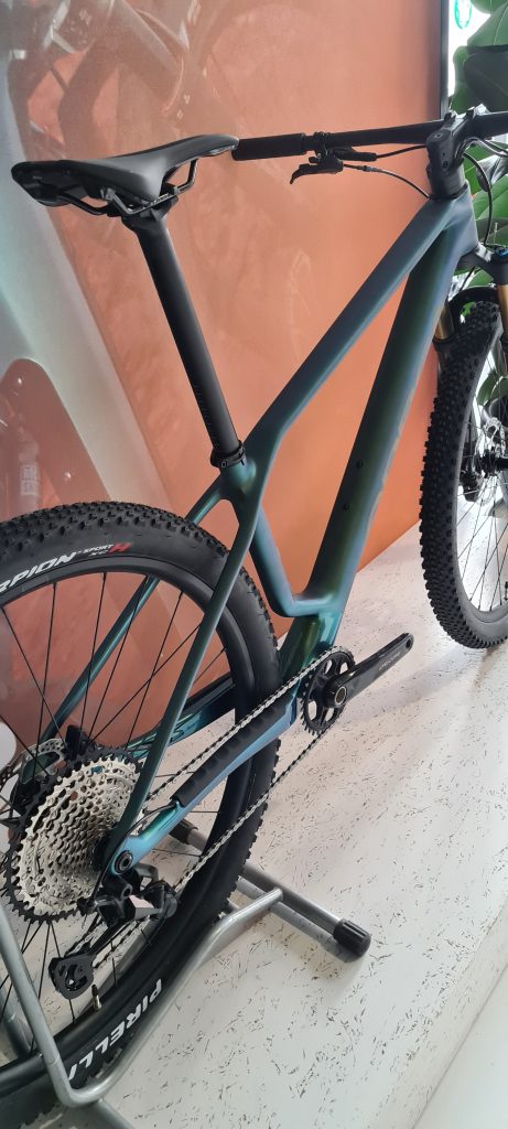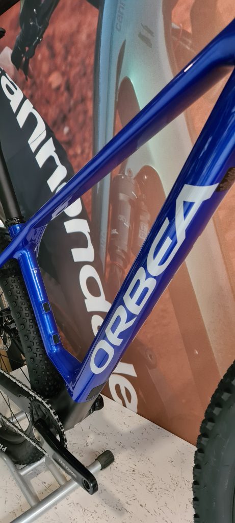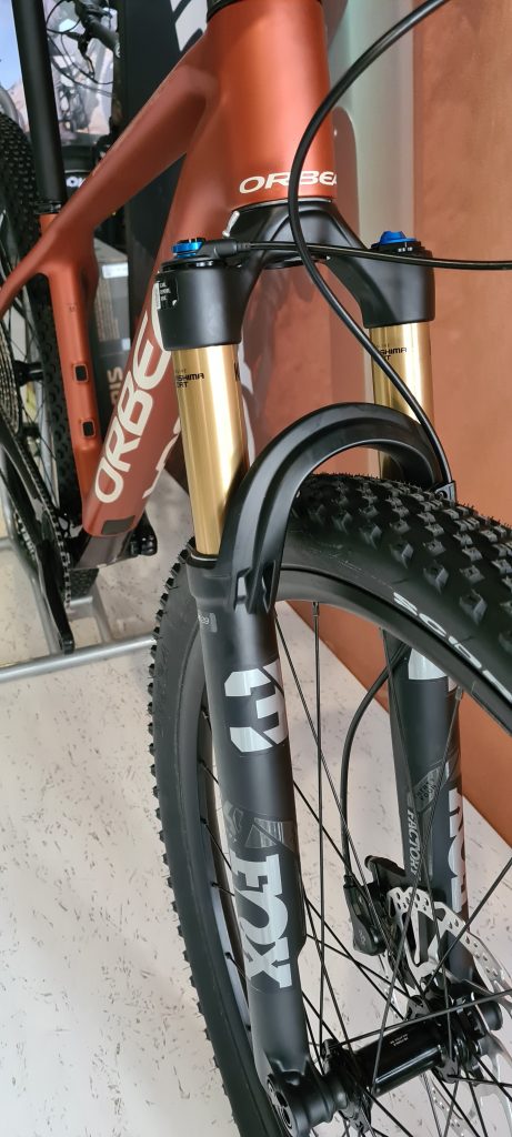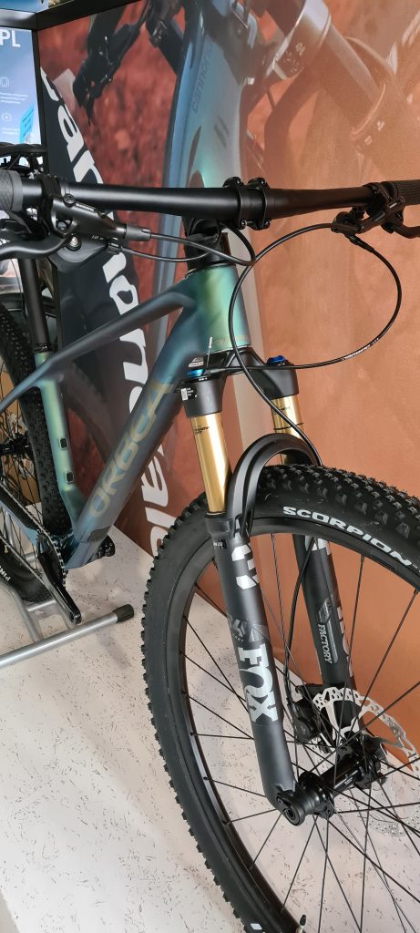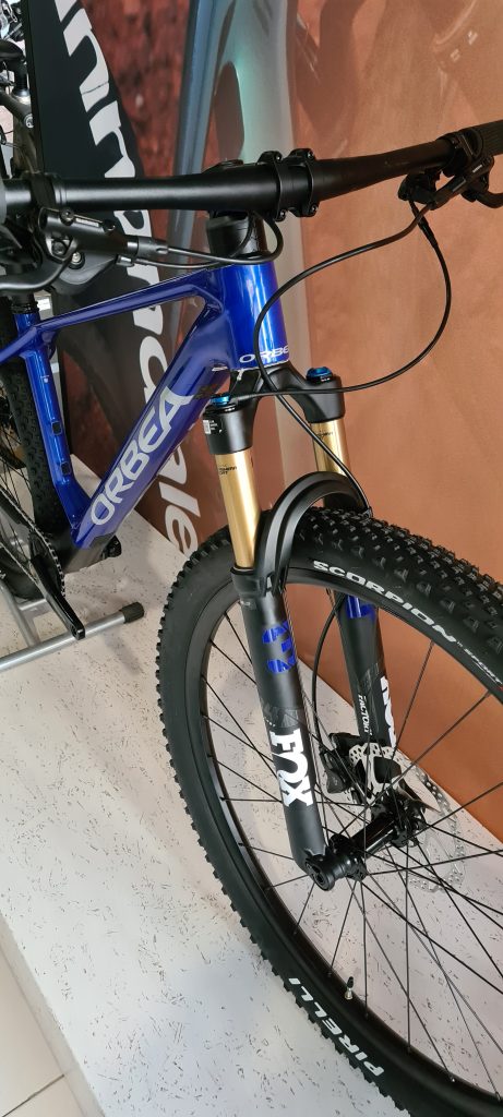 Bicicleta Orbea Alma M25 con cuadro de carbono OMR, horquilla FOX Factory 34 Kashima 100mm, cambio trasero Shimano Deore XT con monoplato 12 velocidades 10-51, frenos hidráulicos Shimano MT410 y cubiertas Pirelli Scorpion Tubeless Ready 29×2.40.