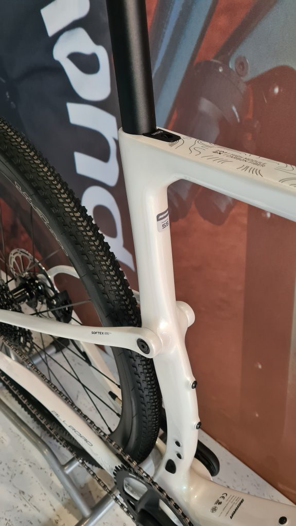 El sistema de suspensión SOFTEX abre una nueva categoría entre una bicicleta Hardtail y una bicicleta de suspensión total. El primer componente del sistema es TIBIA, un tubo de asiento de carbono flexible que absorbe los pequeños baches del camino actuando como un amortiguador. Por otro lado, tenemos el Active Seat Stay (ASS), un mecanismo basado en vainas de asiento y cadenas con forma segmentada e integrando rodamientos, que junto con un lay-up flexible diseñado, ayuda al ciclista a atravesar terrenos rugosos más rápidamente. Todos los elementos combinados proporcionan un recorrido vertical total de 28 mm, ofreciendo un confort extendido y una mayor absorción en comparación con una bicicleta Hardtail convencional.