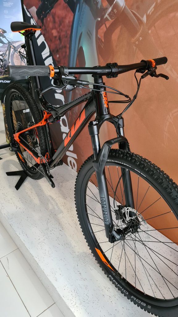 - Ruedas: KTM Line – Shimano MT410B CL 32H 110-15TA / Ryde Rival26 32H 622x26C / DT Champion 2.0 black