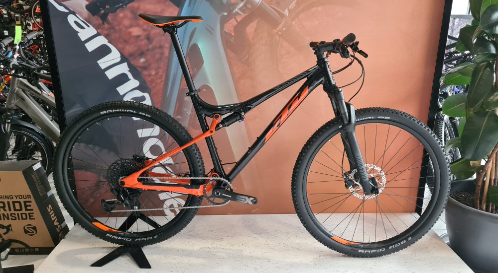 - Ruedas: KTM Line – Shimano MT410B CL 32H 110-15TA / Ryde Rival26 32H 622x26C / DT Champion 2.0 black